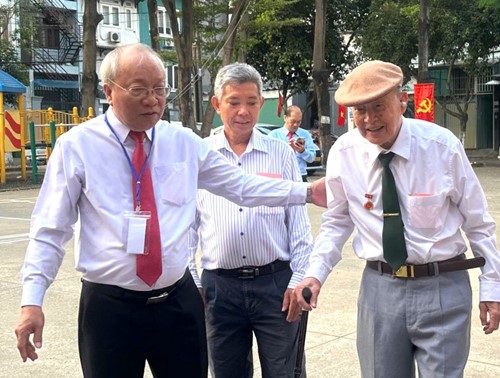 Nhà nghiên cứu Nguyễn Đình Tư (106 tuổi) có mặt tham gia bầu cử tại khu vực bỏ phiếu số 11 (phường Bình Thạnh, Thành phố Hồ Chí Minh).