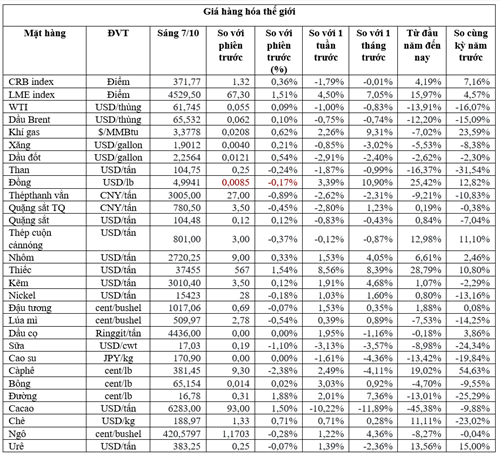 Trong số các kim loại khác, giá nhôm tăng 0,6% lên 2.725 USD/tấn, kẽm giảm 0,8% xuống 3.009 USD, thiếc giảm 1,9% xuống 36.750 USD và niken tăng 0,3% lên 15.480 USD.