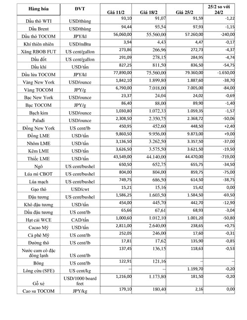 Nguồn:Vinanet/VITIC (Theo Reuters, Bloomberg)
