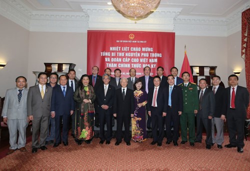 Cùn ngày, Tổng Bí thư Nguyễn Phú Trọng đã đến thăm và nói chuyện với cán bộ, nhân viên Đại sứ quán Việt Nam tại Hoa Kỳ.