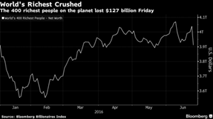 Các tỷ phú đã mất 3,2% tổng trị giá taì sản ròng của mình, theo chỉ số thống kê của Bloomberg. Mất nhiều nhất là tỷ phú châu Âu Amancio Ortega, mất hơn 6 tỷ USD, trong khi 9 tỷ phú khác mất hơn 1 tỷ USD trong đó có Bill Gates, Jeff Bezos và Gerald Cavendish Grosvenor, người giàu nhất nước Anh.