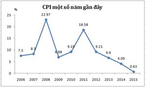 Lạm phát năm 2015 thấp nhất trong 15 năm