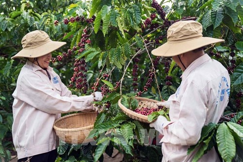 Nông dân trồng cà phê Robusta tại Đắk Lắk đang thu hoạch. Ảnh: Kha Phạm - TTXVN