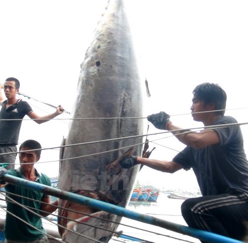 Cận cảnh cá ngừ quý hiếm 307kg ngư dân Khánh Hòa câu được