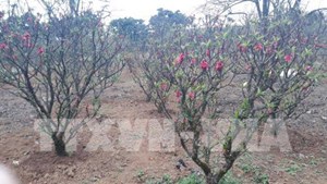 Vườn đào Thất Thốn hàng trăm cây của anh Nguyễn Xuân Tuấn. Ảnh: Nguyễn Chiến - TTXVN