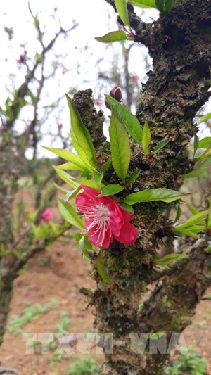 Đào Thất Thốn có đặc điểm hoa mọc cả ở thân cây. Ảnh: Nguyễn Chiến - TTXVN