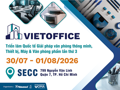 Triển lãm VietOffice 2026 sẽ diễn ra từ 30/07 đến 01/08/2026, tại Trung tâm Hội chợ và Triển lãm Sài Gòn (SECC) – 799 Nguyễn Văn Linh, quận 7, TP. Hồ Chí Minh.