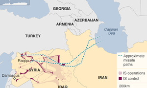 Tên lửa hành trình Nga tấn công vào lãnh thổ Syria